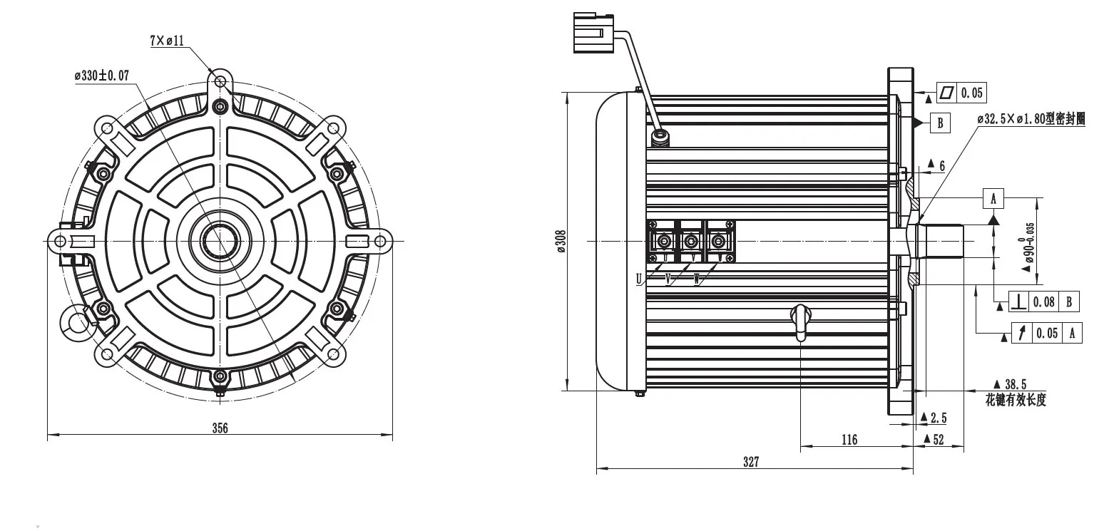 Moteur de traction 6000-11000W, Moteur sans balais PMDC TZ210BX-TMoteur de traction 6000-11000W, Moteur sans balais PMDC TZ210BX-T